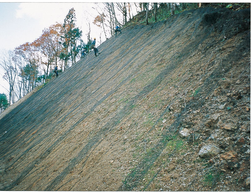 法面の養生や種子を吹き付け植生をした際に降雨等で種子の流失を防ぐためのネットです。