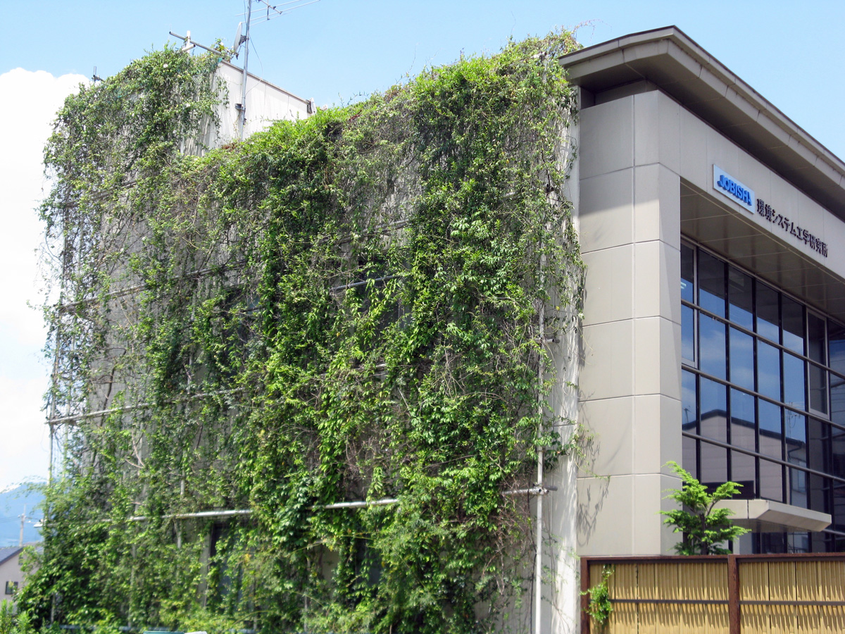 そのような熱の吸収蓄熱の増大、反射率の低下等(ヒートアイランド現象)を緩和するため、近年壁面緑化が推進されています。